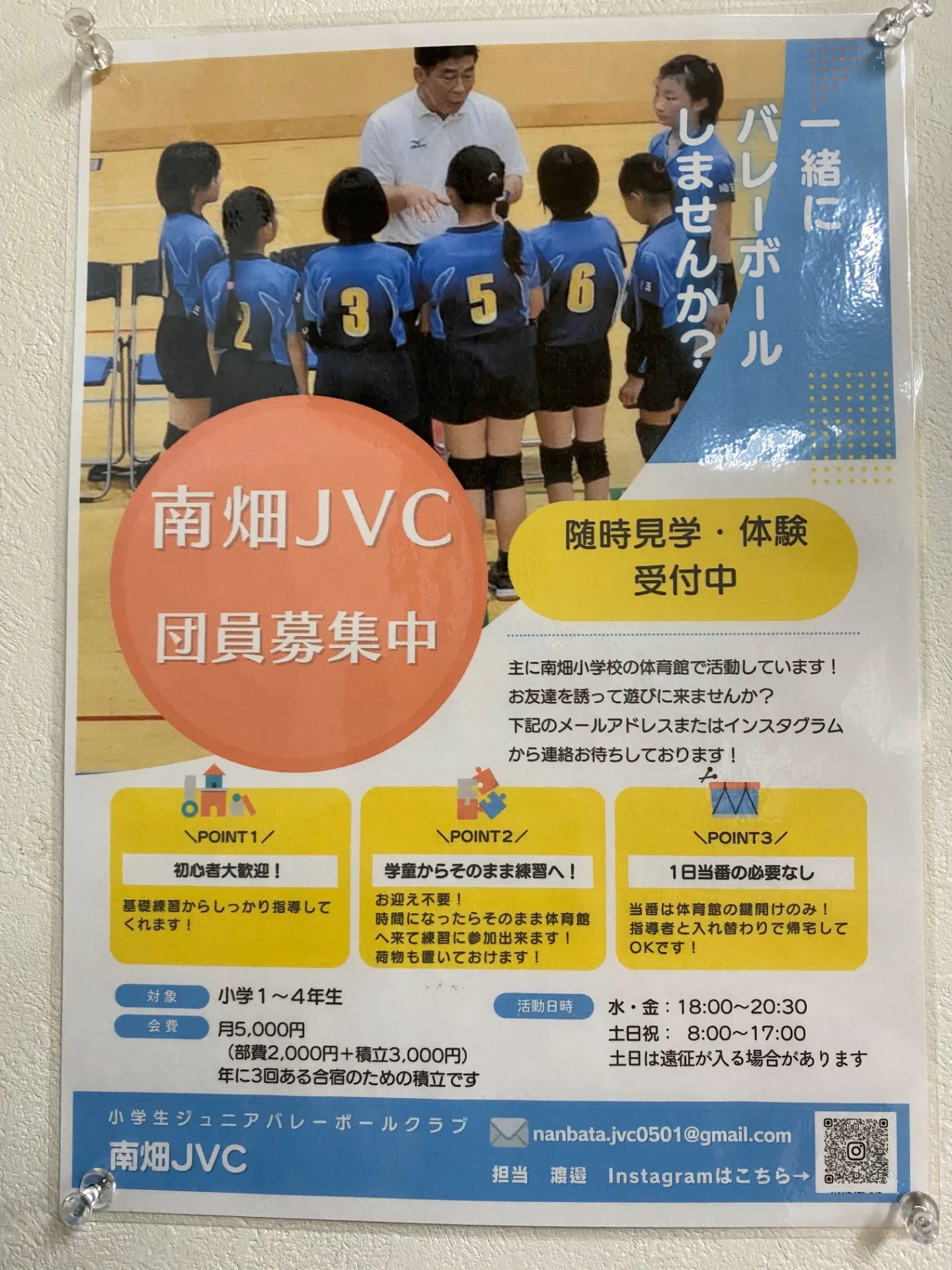 当院に施術に来ている、小学生女子の患者さん達と、コーチ指導をされている患者さんが、所属する、南畑JVC.バレーボールチームが、現在団員募集をしています!